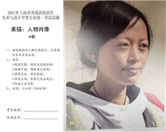 2021上海美术联考素描考题:女学生头像(照片)