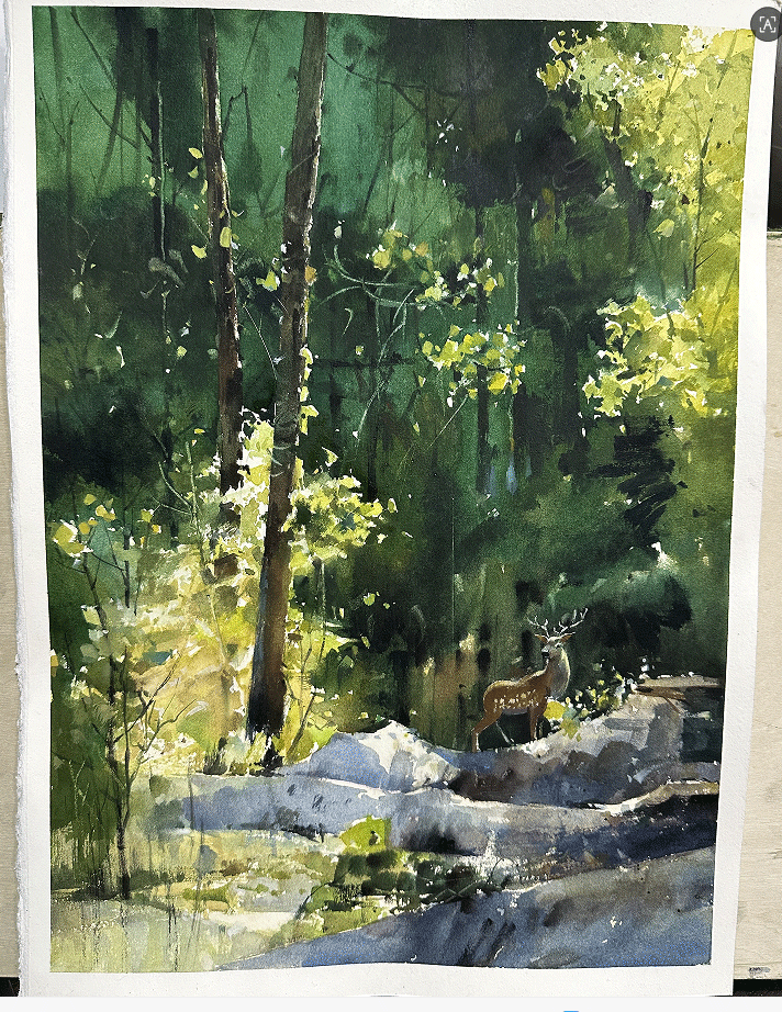 水彩风景森林鹿