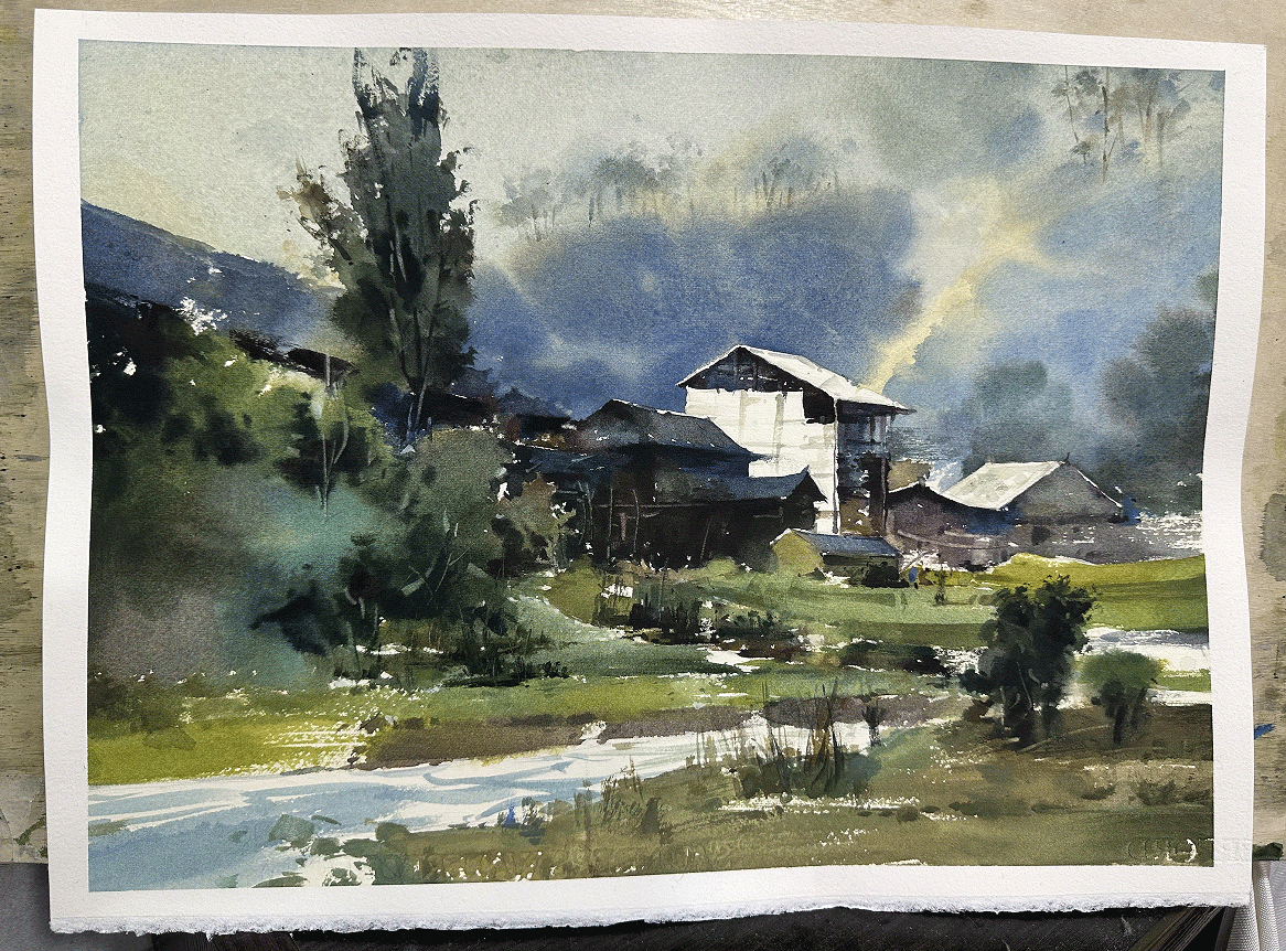 水彩风景乡间