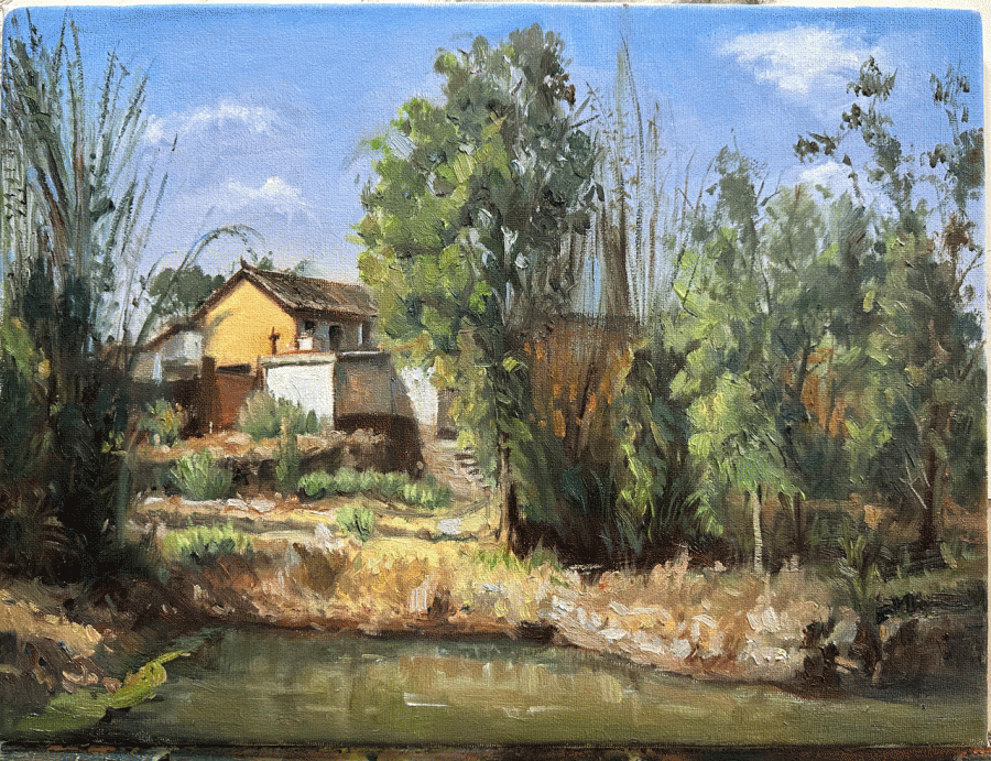 印象油画-风景池塘与鸭群